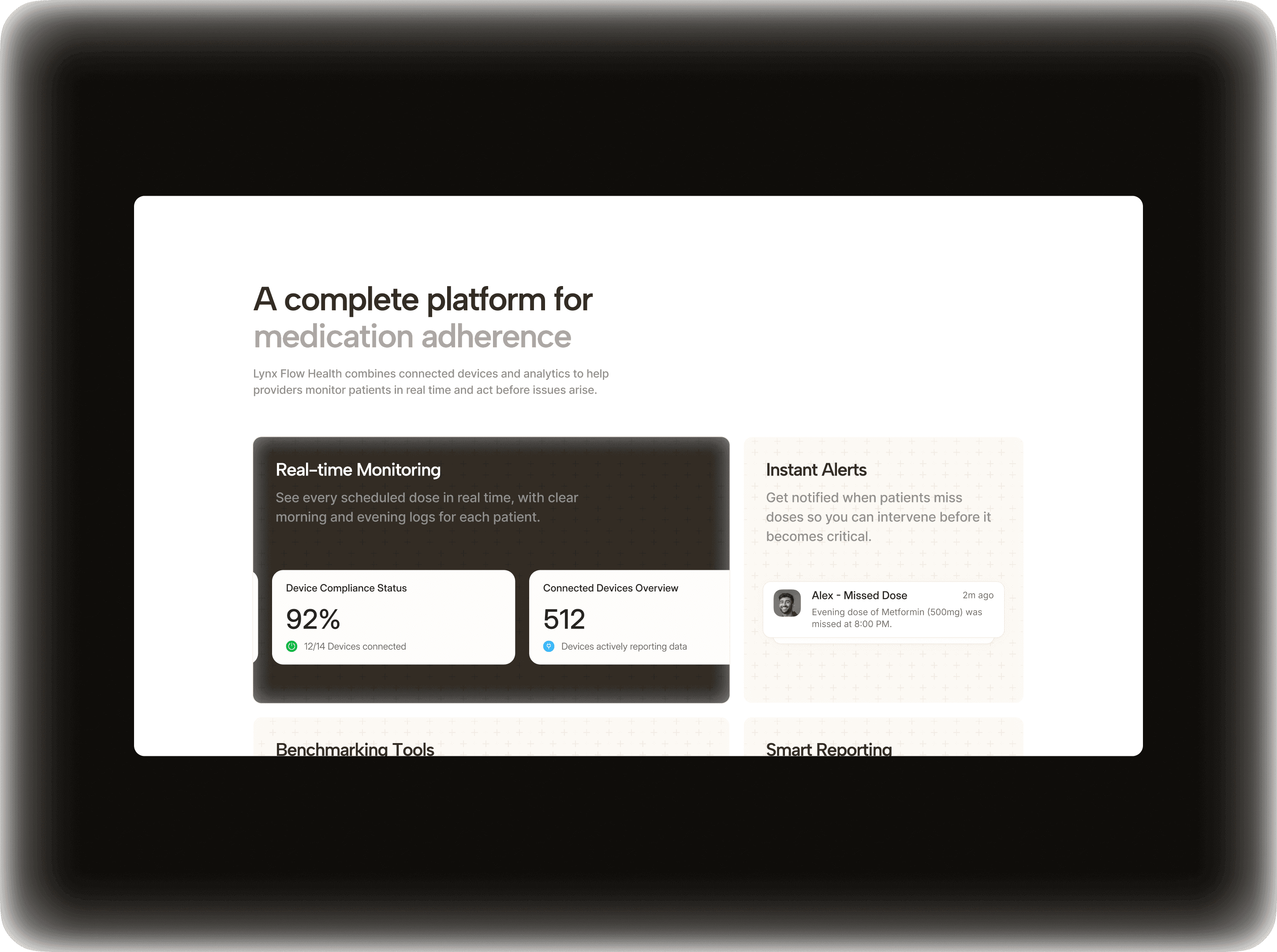 Lynx Flow Health is a remote treatment monitoring platform that lets healthcare teams track patient medication doses in real time, spot risk early with predictive analytics, and improve clinical outcomes.